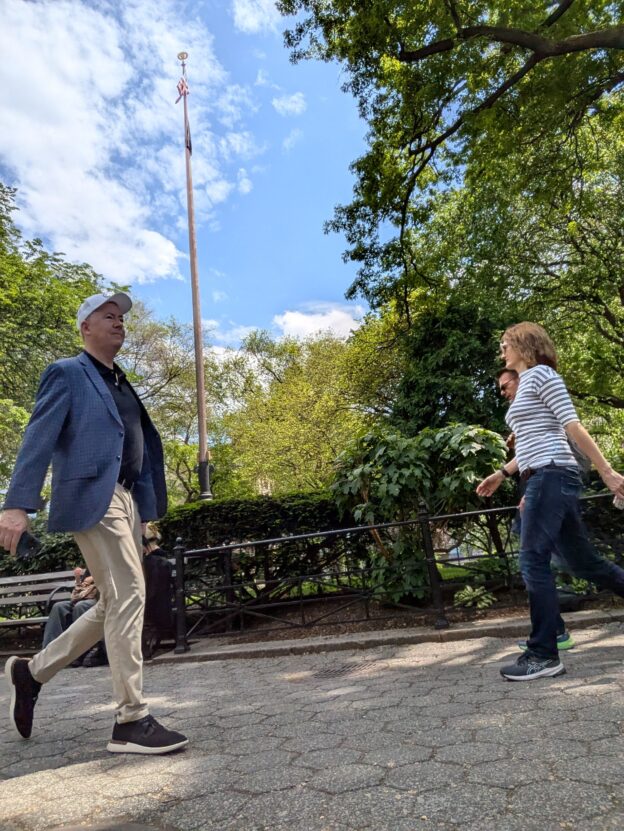 Thursday afternoon, lunchtime. Sitting in Union Square. I don’t recall the last time I was here. It may have been 24 years ago. I do have memories here. I remember being with Julio in the nineties and seeing Daniel Day Lewis on a park bench. He had a look on his face that discouraged interaction, and so we didn’t interact with him.