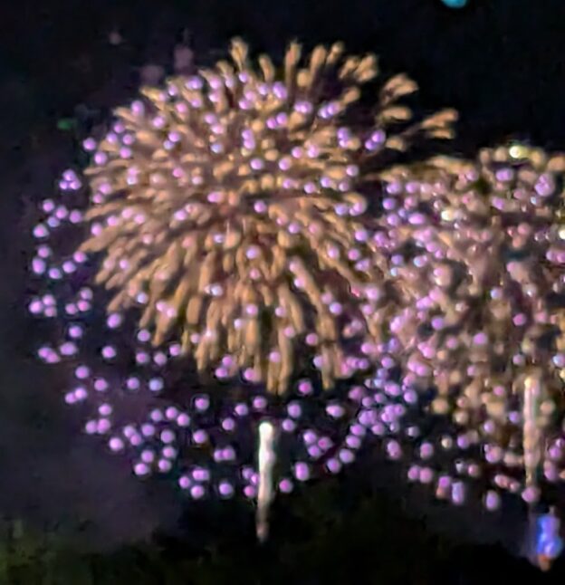 We took a few selfies while we waited and the downtown NYC fireworks went off, visually blocked by the downtown buildings. But a moment later Jersey City and Hoboken had their own shows blowing up so we did have a show after all. When they were finished we came home.