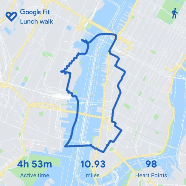 I walked about 10 miles, though one or two miles was spent being transported on the ferry from the mainland to Manhattan. The PATH station is closed this weekend in Hoboken, and the ferry was just $3.00. I call that a bargain.