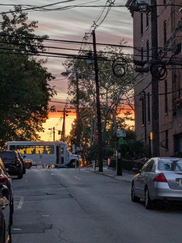 Bill is home. He came to the office yesterday and met Jimmy Chile. They got a long swimmingly is quite nice, and I had an enjoyable ride home on the PATH train, and then a walk through Hoboken at trip to the supermarket, where I almost bought hot dog rolls but figured I had bread at home, and then I got home to find out there was not much bread since Bill ate a lot of it. I got upset and let him know I was upset.