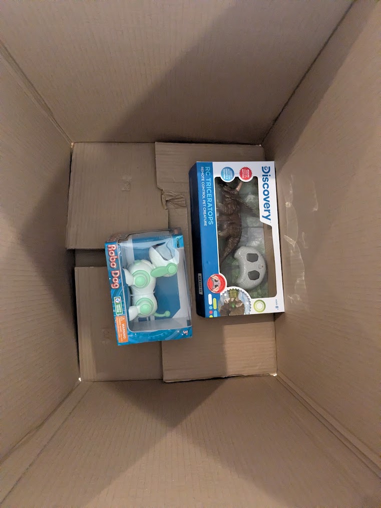 One finds oneself in the curious position of looking for trifles one does not need, and instead stumbling upon something that suggests **duty**. I snagged a pair of mechanical pets—a robot dog, if you please, and a triceratops with remote-control pretensions. Twenty dollars, gone. They’re sitting, I imagine, in the box now, performing their small service, justifying the otherwise appalling emptiness of my own week. A charitable gesture is always so much more palatable when it’s merely a side-effect of a failed self-indulgence.